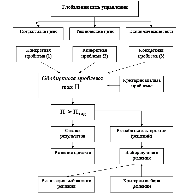 Сформулирована информационная технология управления инновационным развитием, суть которой заключается в обоснованном принятии решений, как сгустка информации, специально собранной, проанализированной и переработанной субъектами управления. Оно информационно по своей сущности и являет собой синтез информации о настоящем с информацией, о будущем, выраженнном в цели, которая запрограммирована и поставлена перед сиснтемой. Этот синтез обычно находит свое выражение в том, что решение состоит из двух частей Ч констатирующей и резолютивнной. Констатирующая часть содержит информацию о состоянии решаемой проблемы, о положении дел, а резолютивная Ч преднписывающую, нормативную информацию. Обосновано, что процесс подготовки и реализации управленческих решений всегда направлен на достижение глобальной цели управления ченрез реализацию промежуточных решений и выбор обоснованного варианта на основе критерия рациональности или оптимальности. Обобщенная блок-схема процесса разработки управленченского решения приведена на рис. 5.