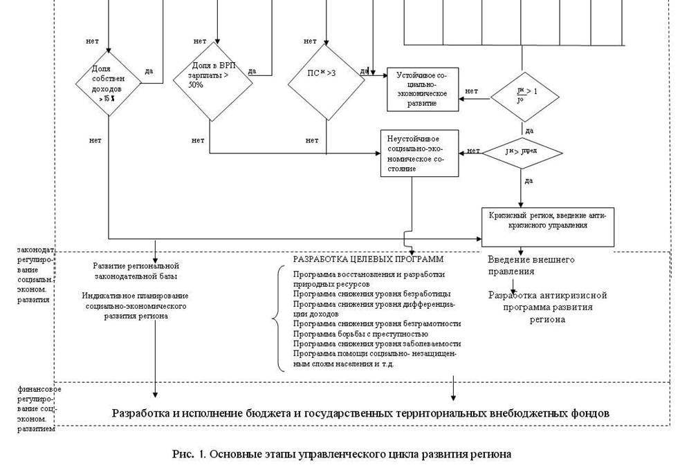 Управленческий цикл развития региона включает в себя следующие этапы: информационное обеспечение управления развитием региона; анализ потенциала развития его экономики; оценка устойчивости экономического и социального развития региона и его территорий; правовое и финансовое регулирование социально-экономического развития.а