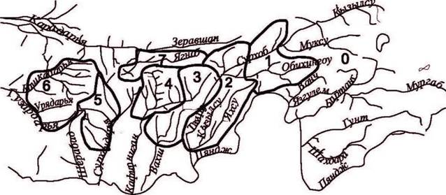 1. На территории бассейна Верхней Амударьи, Зеравшана и Кашкадарьи выделено семь однородных районов в соответствии с характером изменения