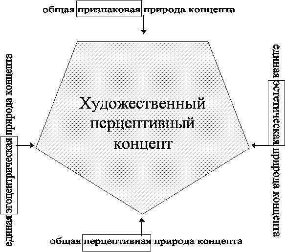 - разрабатывается понятие художественный перцептивный концепт; посредством его моделирования устанавливается корреляция когнитивных и семантических признаков,