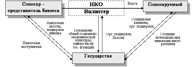 Анализ понятий спонсорства и благотворительности, приведенный в работах российских ученых (А.Ф. Векслер, Т.Б. Журавлева, Г.Ф. Кришталь, Г.Л. Тульчинский, Л.И. Якобсон) показал, что содержание этих понятий можно представить следующим образом: