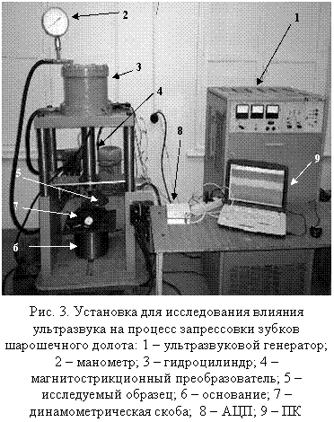 Объект исследования: технологический процесс ультразвуковой запрессовки твердосплавных зубков в шарошку бурового долота.