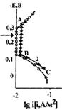 4. При поляризации стали Ст3, покрытой пленкой композиций, содержащих индивидуальные алифатические амины, АТК, АГТК,а наблюдается независимость скорости процесса от потенциала в широкой анодной и катодной области, что обусловлено явлением безоксидной пассивности. При увеличении Самина на порядок и nc растворителя область безоксидной пассивности расширяется, а в случае гомологических смесей аминов в декане и пентадекане смещается в сторону положительных потенциалов. Протяженность интервала независимости токов от потенциала следует рассматривать в качестве дополнительного критерия защитной эффективности композиций.