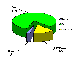 Сахар - основной продукт переработки сахарной свёклы, который широко используется в народном хозяйстве. Однако в этом производстве выход сахара составляет всего аоколо 16,3%, а 83,7% от аколичества исходного сырья приходится на отходы производства, которыми являются меласса -3,5% и свекловичный жом - около 80,2-83% (по весу свёклы) и др. (рис. 9).