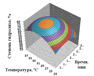 Дальнейшее увеличение температуры приводит к частичной инактивации ферментного препарата. В результате этого степень гидролиза снижается.