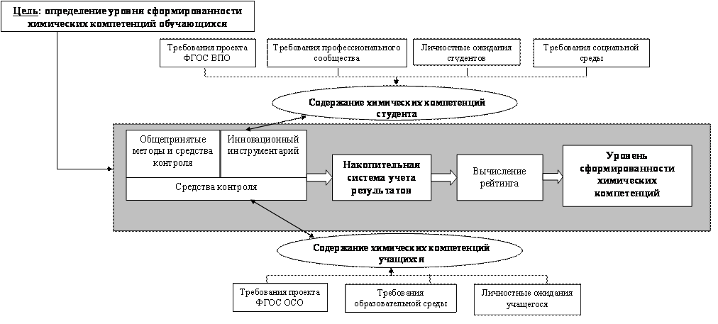 - научно-педагогическом - между необходимостью измерения химических компетенций и определения уровня их сформированности как показателя качества образовательных достижений учащихся и студентов в области химии и недостаточностью разработки теоретических основ реализации поставленной задачи;