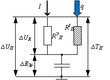 Рис. 5. Эквивалентная схема системы элемент Пельтье - образец - адиабатическая камера: