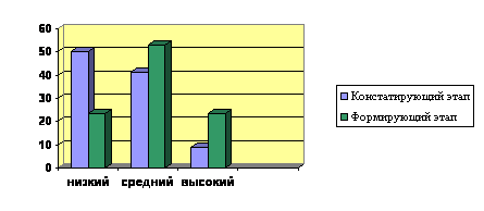 В нашей работе сложнее всего было сформировать мотивационный компонент готовности педагога к работе с детьми. Это объясняется тем, что для его формирования необходима регулярная профессиональная деятельность, когда педагог будет видеть результаты своего труда. Вместе с тем в ходе практики педагоги смогли осознать всю важность педагогического сопровождения обучающихся и реализовать разные формы и методы в работе по обеспечению безопасности жизнедеятельности детей. За счёт активной деятельности педагогов менялась их мотивация. На формирующем этапе эксперимента высоким уровнем готовности обладали 27,8% (72 педагога), среднем - 54,6% (142 педагога),а низком - 17,6% (46 педагогов).
