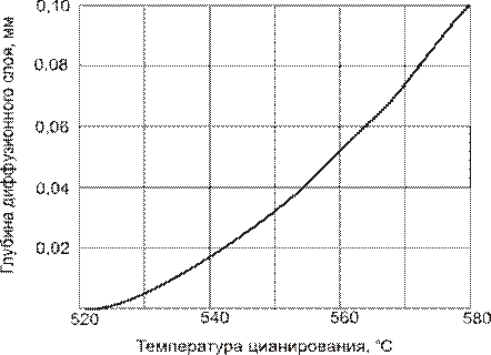 Глубину же этих слоев, зависящую от размеров упрочняемого инструмента, можно регулировать, изменяя температуру цианирования (рис. 3).