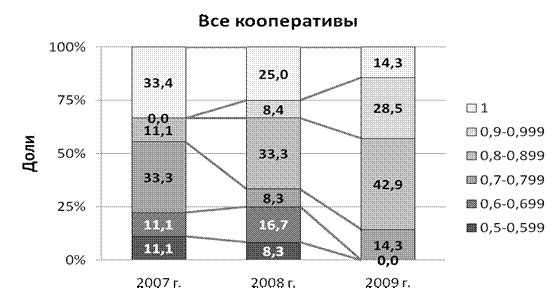 Анализ относительной эффективности сельскохозяйственных потребительских кооперативов Курганской области показал, что в числе лидеров находятся те кооперативы, которые в большей степени ориентированы на предпринимательскую деятельность. Это касается как специализированных, так и универсальных кооперативных организаций. Председателями правлений этих кооперативов являются либо индивидуальные предприниматели (СССПК Продрегион Кетовского района), либо руководители районных потребительских обществ (СССПК Калина Далматовского района, СППК Возрождение Альменевского района). Основную прибыль в них приносят подразделения, не принадлежащие непосредственно кооперативам, а являющиеся собственностью отдельных его членов (потребительских обществ и индивидуальных предпринимателей). Их связь с кооперативами не надежна, и трансакции осуществляются только в те годы и в таких объемах, которые выгодны лишь для этих участников.
