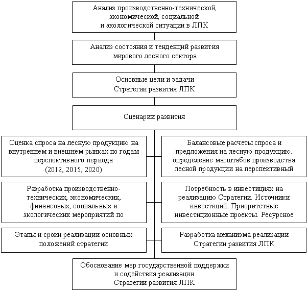 - Разработать методологические принципы стратегического планирования региональных ЛПК во взаимоувязке лесного хозяйства и лесоперерабатывающих предприятий на разных уровнях управления.