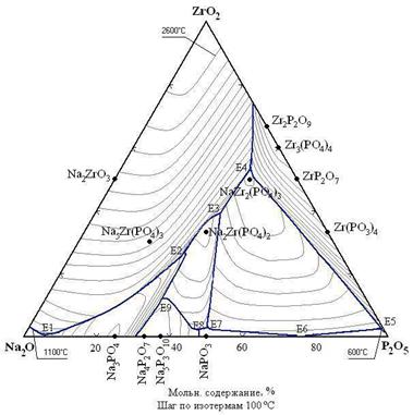 Рисунок 3 - Расчётная диаграмма плавкости системы Na2OЦP2O5ЦZrO2