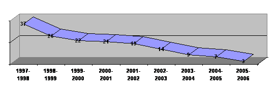 а а ааКоличество подростков, состоящих на учёте в отделении по делам несовершеннолетних Ступинского Управления внутренних дел за период с 1999 г. по 2006 г. сократилось на 30% (с 271 в 1999 г. до 191 в 2006 г.). За тот же период количество преступлений сократилось более чем в два с половиной раза (с 72 в 1999 г. до 28 в 2006 г.), а число участников преступлений уменьшилось более чем в 2 раза (с 65 в 1999 г. до 30 в 2006 г.).