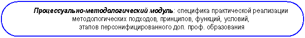 5. Модель реализации персонифицированного подхода в системе ДПО специалистов социальной сферы включает взаимосвязь модулей: процессуально-методологического (специфика практической реализации методологических подходов, принципов, функций, условий, этапов персонифицированного дополнительного профессионального образования); функционально-целевого (персонифицированные ориентиры обеспечения профессионально-личностного роста обучающихся, реализация индивидуальных профессионально-образовательных маршрутов, траекторий развития компетентности специалистов); содержательно-проблемного (профессионально-прикладное и практико-ориентированное содержание учебных дисциплин, обеспечивающее профессионально-личностный рост специалиста, удовлетворение его образовательных потребностей);а организационно-технологического (научно-методическое, материально-техническое обеспечение ДПО, совокупность вариативных образовательных технологий); праксиологического (накопление опыта проявления освоенных компетенций в различных видах стажировки; развитие форм научно-исследовательской деятельности слушателей); результативно-интегративного (мониторинг качества освоения профессионально-образовательных программ с привлечением внешних экспертных систем; наличие индивидуального профессионально-социального портфолио, кейс-комплекта с учетом специализации, реального или потенциального места трудоустройства специалиста), последовательность этапов ее реализации (аналитико-маркетинговый, диагностико-ориентационный, организационно-процессуальный, экспертно-мониторинговый).
