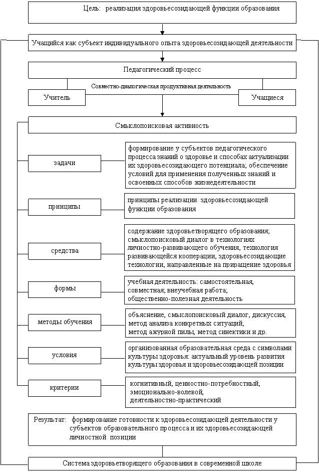 аа Ц обосновано и представлено новое содержание научно-методического обеспечения учебно-воспитательного процесса в школе на основе здоровьесозидающей функции образования, согласно которой современное обучение и воспитание строятся на стратегии совместно-диалогической здоровьесозидающей деятельности субъектов педагогического процесса, направленной на актуализацию их здоровьесозидающего потенциала, формирование культуры здоровья и здоровьесозидающей позиции личности;