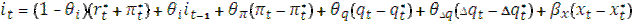 Данное правило обобщает правила Тейлора и Вудфорда, учитывая инерцию процентной ставки, ожидания, отклонения фактических значений инфляции и выпуска от целевых, а также отклонения контрольных значений. Отдельное внимание было уделено контрольным значениям (