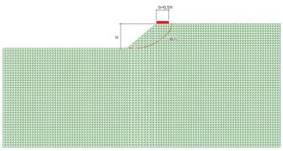 5. Интенсивность внешней нагрузки увеличивается до расчетного значения, вновь проводится построение наиболее вероятной поверхности скольжения и вычисляются перемещения в соответствующих ее точках.