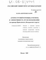 Агроресурсный потенциал региона и эффективность его использования тема диссертации по экономике, полный текст автореферата