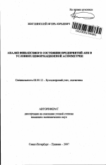 Анализ финансового состояния предприятий АПК в условиях информационной асимметрии тема диссертации по экономике, полный текст автореферата
