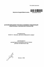 Банковский бизнес России в условиях глобализации электронных технологий и финансов тема диссертации по экономике, полный текст автореферата