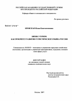 Бизнес-туризм как фактор развития туристического рынка России тема диссертации по экономике, полный текст автореферата