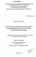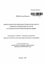 Демографическое измерение профессионального развития человеческих ресурсов в условиях всероссийской депопуляции тема диссертации по экономике, полный текст автореферата