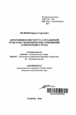 Детерминизм института соглашений в системе экономических отношений агентов рынка труда тема диссертации по экономике, полный текст автореферата