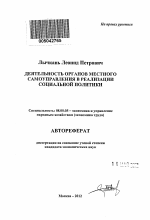 Деятельность органов местного самоуправления в реализации социальной политики тема диссертации по экономике, полный текст автореферата