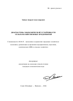 Диагностика экономической устойчивости сельскохозяйственных предприятий тема диссертации по экономике, полный текст автореферата