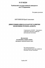 Диверсификация как фактор развития экономики региона-донора тема диссертации по экономике, полный текст автореферата