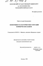 Эффективность факторинговых операций коммерческих банков тема диссертации по экономике, полный текст автореферата