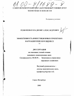Эффективность инвестиционных проектов в фармацевтическом бизнесе тема диссертации по экономике, полный текст автореферата