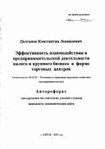 Эффективность взаимодействия в предпринимательской деятельности малого и крупного бизнеса в форме торговых центров тема диссертации по экономике, полный текст автореферата