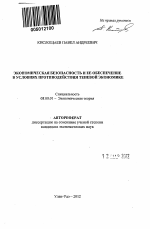 Экономическая безопасность и ее обеспечение в условиях противодействия теневой экономике тема диссертации по экономике, полный текст автореферата