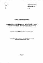 Экономическая сущность интелектуальной собственности и методология ее оценки тема диссертации по экономике, полный текст автореферата