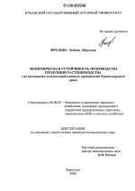 Экономическая устойчивость производства продукции растениеводства тема диссертации по экономике, полный текст автореферата