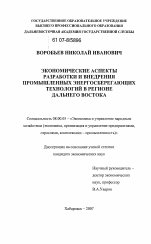 Экономические аспекты разработки и внедрения промышленных энергосберегающих технологий в регионе Дальнего Востока тема диссертации по экономике, полный текст автореферата
