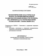 ЭКОНОМИЧЕСКИЕ КЛАСТЕРЫ КАК ФОРМА ФУНКЦИОНИРОВАНИЯ И РАЗВИТИЯ ПРОМЫШЛЕННОСТИ РЕГИОНА (НА ПРИМЕРЕ КЛАСТЕРОВ ВЫСОКИХ ТЕХНОЛОГИЙ г. НОВОСИБИРСКА)