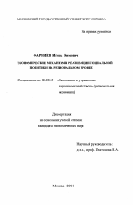 Экономические механизмы реализации социальной политики на региональном уровне тема диссертации по экономике, полный текст автореферата