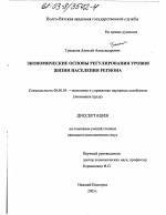 Экономические основы регулирования уровня жизни населения региона тема диссертации по экономике, полный текст автореферата