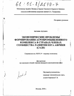 Экономические проблемы формирования агропромышленного комплекса в странах - членах сообщества развития юга Африки (САДК) тема диссертации по экономике, полный текст автореферата