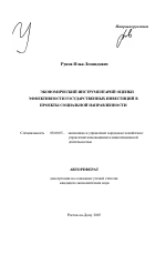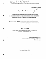 Экономический инструментарий оценки эффективности государственных инвестиций в проекты социальной направленности тема диссертации по экономике, полный текст автореферата