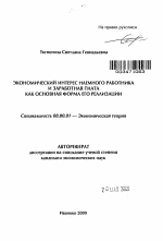 Автореферат диссертации по теме "Экономический интерес наемного работника и заработная плата как основная форма его реализации"