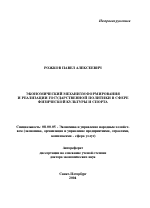 Экономический механизм формирования и реализации государственной политики в сфере физической культуры и спорта тема диссертации по экономике, полный текст автореферата