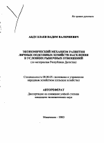 Экономический механизм развития личных подсобных хозяйств населения в условиях рыночных отношений тема диссертации по экономике, полный текст автореферата