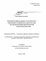 Экономический механизм стратегического управления угольной отраслью в составе ТЭК для обеспечения энергетической безопасности России тема диссертации по экономике, полный текст автореферата