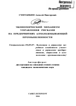 Экономический механизм управления рисками на предприятиях амазодобывающей промышленности тема диссертации по экономике, полный текст автореферата