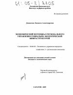 Экономический потенциал регионального управления социально-экологической инфраструктурой тема диссертации по экономике, полный текст автореферата