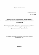 Экономическое обоснование эффективности использования факторов производства угольных предприятий тема диссертации по экономике, полный текст автореферата