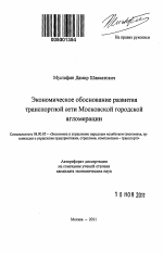 Экономическое обоснование развития транспортной сети Московской городской агломерации тема диссертации по экономике, полный текст автореферата